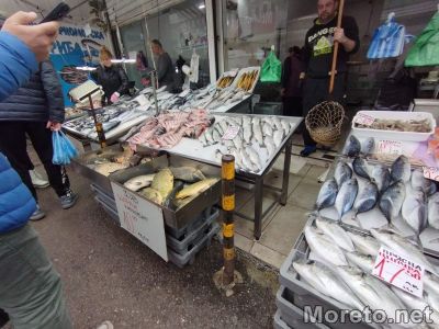 Прясната ципура върви по 17.50 за килограм, а пресният лаврак по 18.50 лева. Кило филе от прясна сьомга се търгува по 32 лева, котлетът от толстолоб по 10 лева, прясна пъстърва по 14 лева. Сомът струва 15 лв./кг, паламуд - 12 лв./кг, калмари цели - 15 лв./кг, скумрия - 8 лв./кг. Килограм цаца се предлага за 3.50 лева. Калканът върви по 30 лева, акула 12 лв./кг, хек 9 лв./кг, кая 8 лв./кг, карагьоз 14 лв./кг, лефер 45 лв./кг, сафрид 7 лв./кг, заргана 15 лв./кг, чернокоп 8 лв./кг.