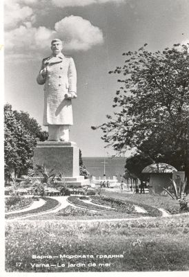 Взето е решение за изграждане на паметник на Сталин в цял ръст до колонадата на входа на Морската градина (където днес се намира Слънчевият часовник). Открит е тържествено през 1950 г., с военноморската духова музика и с оръдейни залпове, в присъствието на бъдещия министър-председател Вълко Червенков. Петолъчка от цветя разкрасява района пред паметника, заедно с надпис "Мир социализъм", също от цветя, разкрива още Антова.