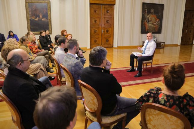 Държавният глава подчерта, че институциите трябва да бъдат партньор на хората на изкуството и да съхраняват достойнството им, така че артистите да усещат подкрепа и да имат свободата и спокойствието да работят.