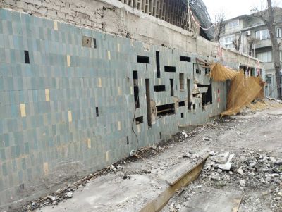 На място може да се види как голяма част от външните и вътрешните стени вече са съборени. Останалата част от сградата на бившата обществена баня се държи от метални подпори. Куполът на зданието все още е на мястото си.