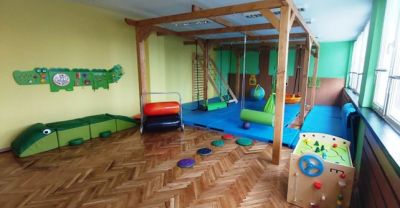 В залата за ерготерапия с площ 44 кв. м., на стойност - 37 824 лева, са монтирани: сетивни панели, висящи люлки, комбинирана стена за катерене, ролкова пързалка, гигантски валяци и други съоръжения, съобразени с възрастта, уврежданията и двигателните умения на учениците.