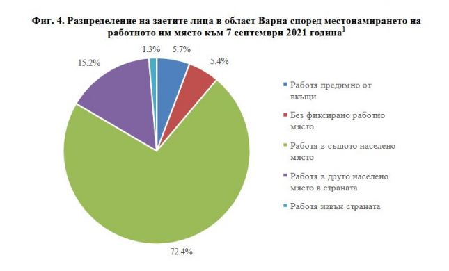 Към 7 септември 2021 г. 9678 души (5.7%) в област Варна работят предимно от вкъщи. Без фиксирано работно място са 9098 лица, или 5.4%. Това съобщават от Териториално статистическо бюро - Североизток.