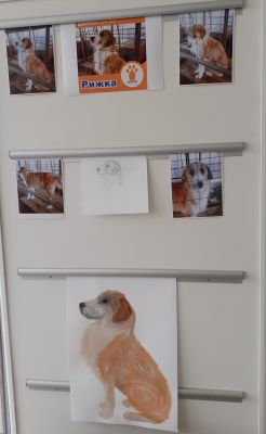 Във фоайето на училището е подредена изложба със снимки на всички предложени за осиновяване кученца и едно коте , както и рисувани портрети на някои от животните.
