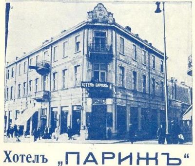Сградата, където се е помещавал бившият гранд хотел “Париж”, е проектирана през 1906 година от софийския архитект Геро Геров. Била е собственост на Риза бей Халилов. Само няколко години след изграждането ѝ ютия, използвана от клиент, предизвиква пожар и вторият етаж изгаря. Година по-късно наследниците на Риза бей по проект на арх. Дабков възстановяват хотела и го надстрояват с трети етаж.