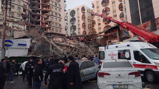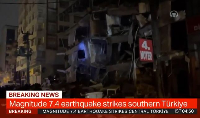 Телевизионните турски оператори TRT и Haberturk показват кадри на хора, които разравят останките на сградата, местят носилки и търсят оцелели в Кахраманмараш, където беше епицентъра на много силното земетресение.