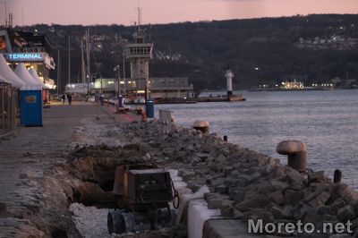 Стартира укрепване на паважната настилка в зоната на 1 кейово място край сградата на Морска гара във Варна, видя репортер на Moreto.net.