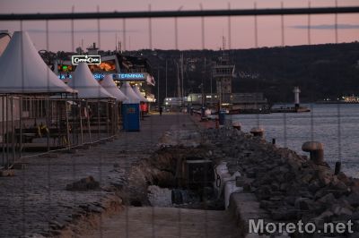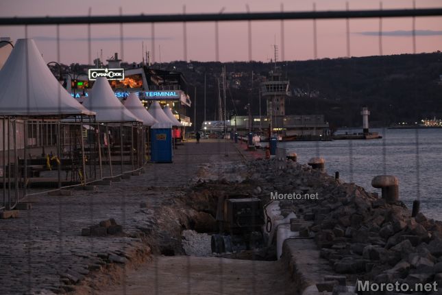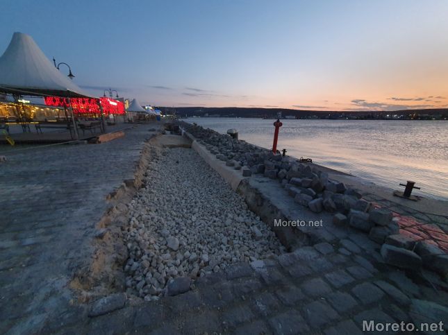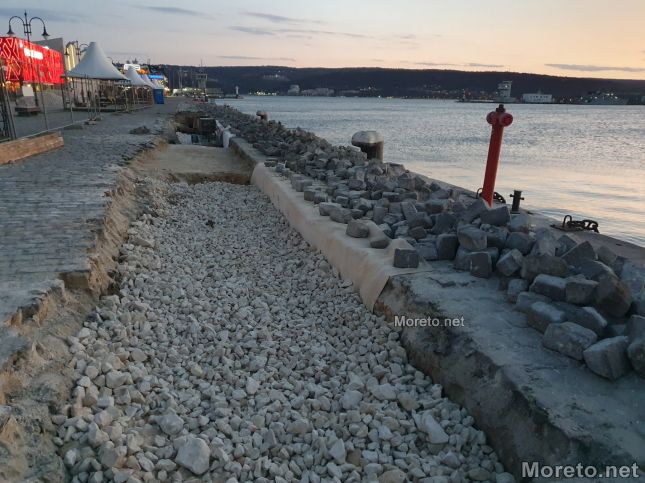 Укрепват паветата край кейовата стена до Морска гара (снимки)