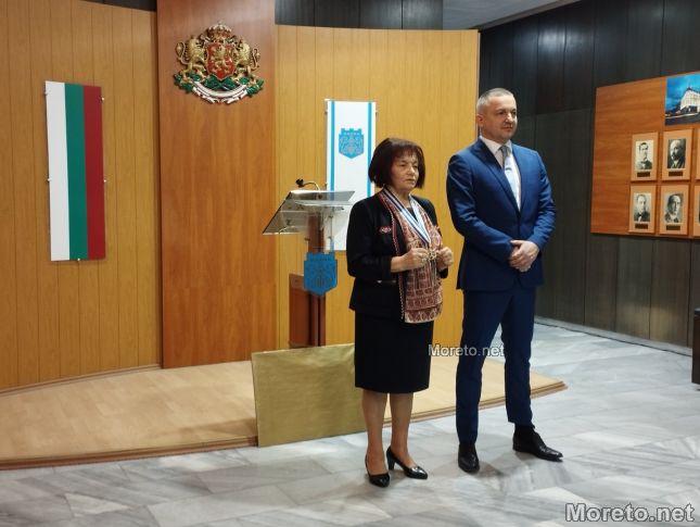 Председателят на Синдиката на българските учители Янка Такева получи почетен знак на кмета на Варна на официална церемония, предаде репортер на Moreto.net.