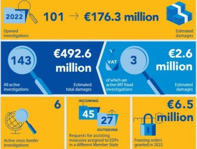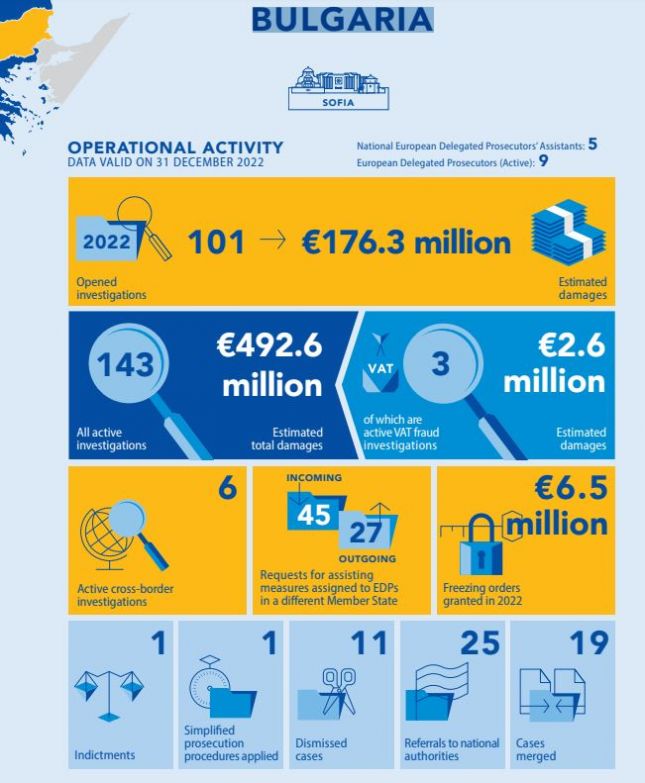 143 разследвания заради съмнения с измами с бюджета на ЕС за близо 500 млн. евро се водят в България - това става ясно от публикувания доклад на Европейската прокуратура за миналата година.