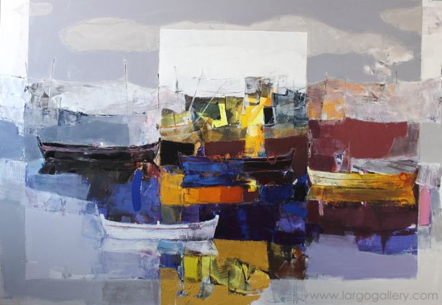 В настоящата експозиция Светлин излива своята любов към морето в почти абстрактни композиции, разказвайки ни своите морски притчи за рибарски мрежи, слънце и луна, за разпилени по плажа чадъри, сбогуващи се с лятото, за лодки, самотно полюшващи се на пристана, за морски фарове, показващи ни пътя към дома.