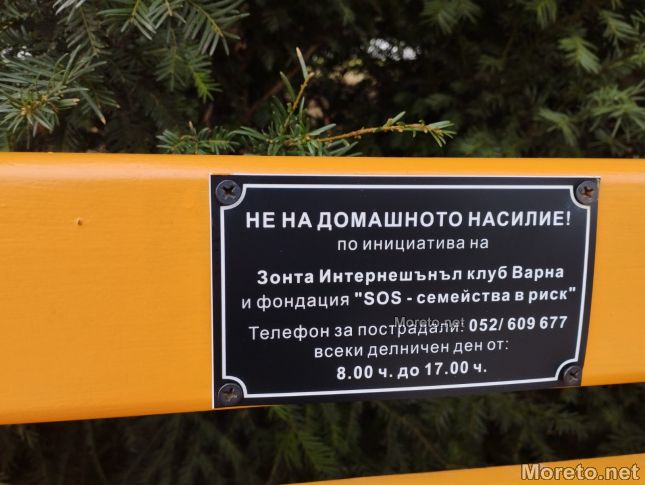 Оранжева пейка във Варна стана част от борбата срещу домашното насилие у нас. Мястото за сядане в ярък цвят се намира близо до Морското казино. На облегалката му има табела, гласяща „Не на домашното насилие!“, видя репортер на Moreto.net.