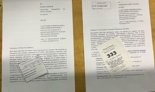 Документът е от април 2022 г., когато Коцев е областен управител по времето на правителството на Кирил Петков. В писмото си към общинския съвет пък, те отново настояват съветниците да отменят това решение, което е в ущърб на всички варненци.