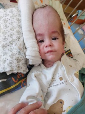 “Божидар е вече на 1 годинка и тежи едва 5 килограма. В момента Божи отново се нуждае от операция, тъй като вътречерепното налягане расте. Неврохирурзите тук казват, че ако поставят клапа, вероятността тя отново да се инфектира е почти 100%, а друго лечение за хидроцефалия няма.”