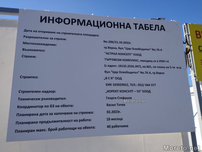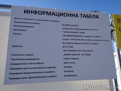 На този етап строителна площадка все още не е разкрита официално и реални дейности не се извършват. Поне това става ясно от информационната табела, поставена върху огражденията около имота. На нея няма записана дата на откриване на площадката.