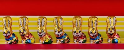 С наближаването на Великденските празници започват да се появяват характерни за тези дни изделия – козунаци, предварително боядисани яйца, тематични шоколадови фигурки. Макар да се предлагат за първи път тази година, етикетите им вече са цветни, с отстъпки средно от 15-20%.