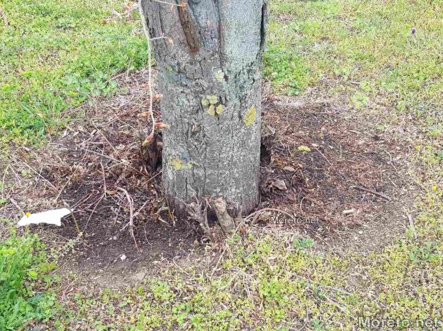 В основата на дърветата действително за забелязва напоена пръст с течност, а в близост се усеща миризма на гориво, установи проверка на репортер на Moreto.net.
