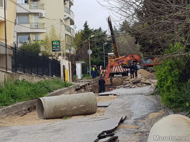 Изкопът е почистен, отстранени са парчетата пътна настилка. На мястото на аварията са доставени всички необходими материали и техника за ремонта. До края на работната седмица ще бъде премахната компрометираната тръба и ще бъде поставена новата с новите връзки.