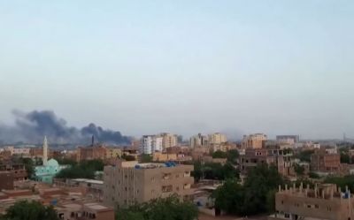 В града се виждат колони от гъст черен дим, издигащи се от сградите около международното летище в Хартум и щаба на армията в столицата.