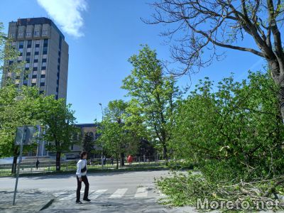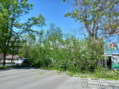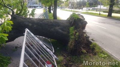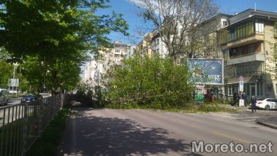 Огромно дърво падна на бул. "Осми приморски полк" буквално на метри от Община Варна, предаде репортер на Moreto.net