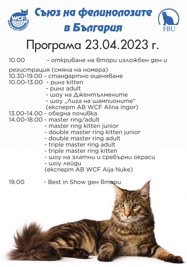 Изложбата се провежда по правилата на Световната федерация на котките WCF.
