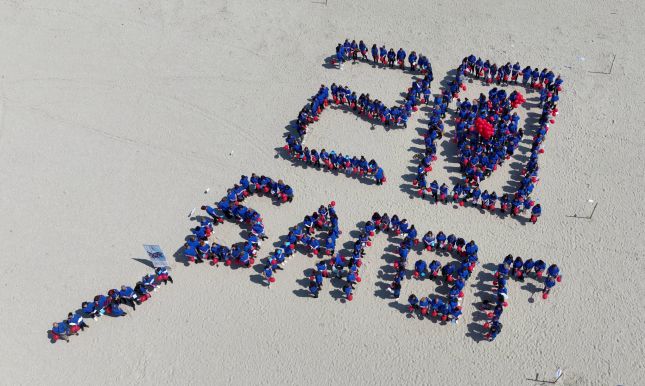 Всички те образуваха с телата си цифрата 20 и абревиатурата БАПЗГ.