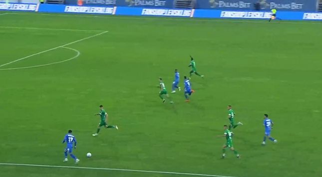 В 90-ата минута домакините Марин Петков бе спрян с нарушение на границата на наказателното поле. Изпълнението на свободния удар се забави от нахлули на терена фенове, а след това Патрик Габриел-Галчев не сполучи при изстрела си.