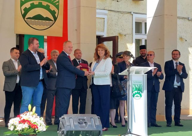 Илияна Йотова благодари на кмета Николай Митков и цялото общинско ръководство на Първомай, че успяват да се справят в трудните години и развиват общината.