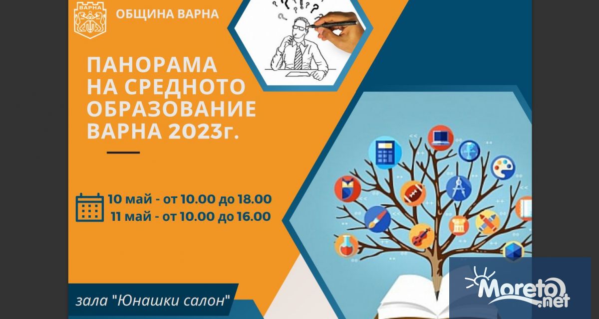 Панорама на средното образование ще се проведе на 10.05. от 10 до 18 ч. и на 11.05. - от 10 до 16 ч. в Юнашкия салон във Варна. Форумът ще събере всички професионални, профилирани и средни училища в морската столица и две професионални гимназии от Добрич и Белослав. За първа година в изложението ще участва и фирма-работодател. Организатор е Центърът за кариерно ориентиране (ЦКО), дирекция „Образование и младежки дейности“ към Община Варна.