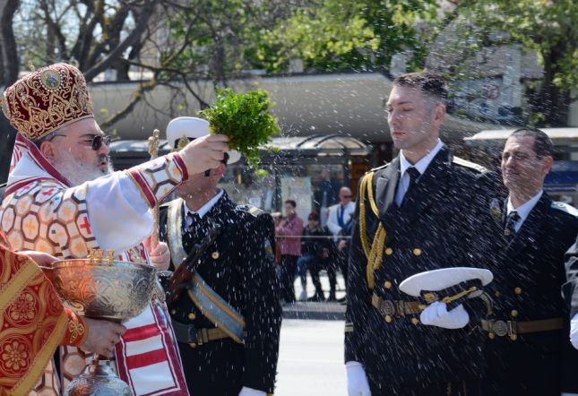 Точно в 10.30 ч. на пл. „Св. Св. Кирил и Методий” Варненският и Великопреславски митрополит Йоан отслужи водосвет и благослови бойните знамена, а представителните военни части преминаха в тържествен марш.