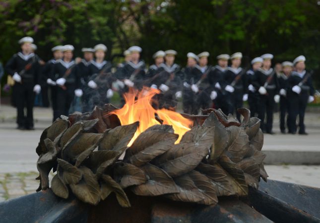 С военен ритуал и полагане на цветя и венци пред паметника-мемориал на Осми приморски полк започна честването на 9 май - Ден на победата над хитлерофашизма и Ден на Европа. В знак на признателност пред паметта на героите венци бяха поднесени от кмета на Варна Иван Портних, командира на Военноморските сили контраадмирал Кирил Михайлов, областния управител Марио Смърков, директорът на ОД на МВР ст. комисар Атанас Михов, представители на районните администрации, граждани.