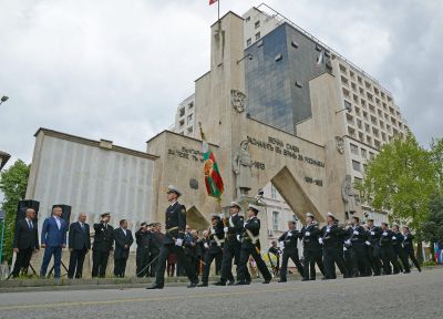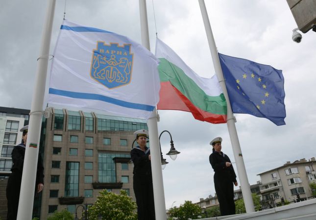 По-късно пред сградата на Община Варна по традиция бяха тържествено издигнати флаговете на Европейския съюз и на Република България под звуците на националния химн и на химна на обединена Европа.