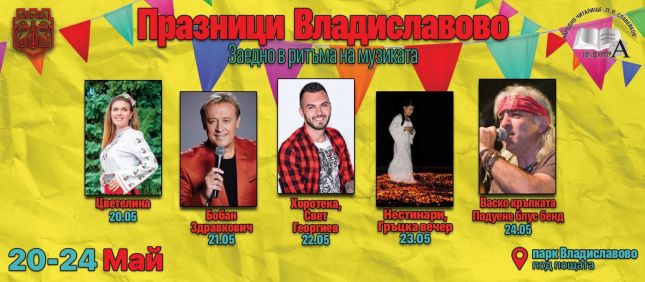Музика и забавление ни очакват от 20 до 24 май в кв."Владиславово" във Варна, научи Moreto.net Сред изпълнителите, които гостите на "Заедно в ритъма на музиката" ще чуят са Васко Кръпката и Подуене Блус Бенд, Бобан Здравкович, Цветелина. За желаещите да разкършат снаги и крака е предвидена хоротека и гръцка вечер, любителите на мистиката пък ще се насладят на нестинарски танци. Всичко при вход свободен.