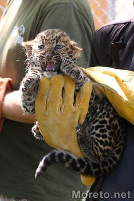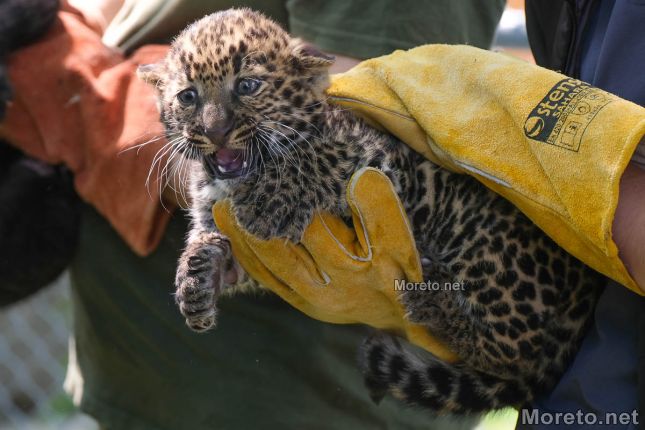 Очаквахме раждането на леопардчетата, тъй като майката започна да проявява признаци за това няколко седмици по - рано. Беше отделена от мъжкия. Изградихме специално местообитание за нея и вътрешно помещение, в което да може да направи бърлога. След като роди малките си цяла седмица не излиза, стоя неотлъчно до рожбите си без дори да се храни, което е съвсем нормално поведение за тези животни. Нещата протекоха по много естествен начин и женската се чувстваше добре. Малките вече излизат от бърлогата. Нравът на леопардчетата е като за едри хищни котки. Леопардът е изключителен хищник.”, разказа ветеринарят на зоокъта д - р Михаил Василев.