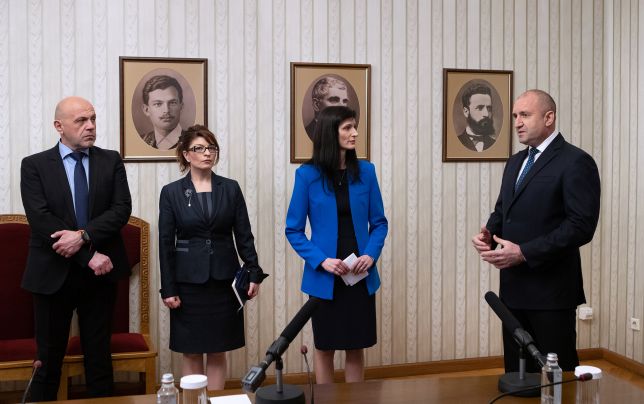 Пътят, по който сте се насочили, изисква много работа и най-вече интензивна комуникация пред българското общество, заяви президентът Радев, като отбеляза положените усилия в търсене на подкрепа в силно фрагментиран парламент. Държавният глава призова, независимо от хода на процедурата за съставяне на правителство, парламентарно представените политически сили да не бавят приемането на държавен бюджет и други закони, които се очакват от българските граждани и са изключително важни за българската държава.