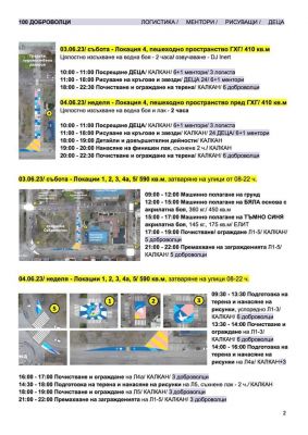 На 2 юни пред ГХГ, както и на 3 и 4 юни на асфалта на кръстовищата в района ще се рисува с акрилатна боя, която е по-трайна от водната, но има леко неприятни изпарения. Затова с нея могат да рисуват само хора на възраст над 18 г. Всеки ще получи нужните мерки за безопасност - маска, ръкавици и калцуни.