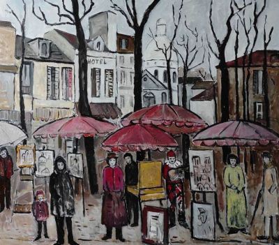 Трудно е да говориш за голямата любов към Париж, нейния дух, все още носещ времето, когато се е оформяла така наречената Парижка школа, Монмартър е короната на Париж. Площад Тертр, с художниците привличащи туристите с това което рисуват и митичното гнездо на художниците - Бато Лавоар. Времето 1905 -1914г, когато там живеят в нечувана мизерия, тези които създават нови течения в изкуството. Там е преди всичко Пикасо, по-късно през ателиета минават Шагал, Моделиани и много други създатели на Парижката школа. Много още от големите имена минават при тях, за да си свързват както се казва часовниците. Аз импровизирам върху по- късните им ателиета, които вече са на други места, когато са вече утвърдени имена Монмартър ми е близък като дух.Там в бар Лапен Анжал, са се хранели великите художници на Франция, Бато лавоар, малките улички по които са вървели, спорили, рисували, влюбвали са се, влияещи са се в своя път на художници, създавайки Парижката школа, променила съвременния ход на изкуството. Аз много съжалявам, но не ми е възможно да съм във Варна и да ги кажа тези неща, вместо да ги пиша. Здравословни проблеми. Благодаря на Тереза Зиковска за поканата да гостувам в тази нейна хубава галерия. Благодаря и на интереса към моите работи, които показвам Поклон!