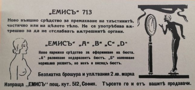Уголемяване на бюст или боядисване на побелелите коси са само част от нещата, които са рекламирани у нас през първата половина на 20. век. Огромно разнообразие от забавни реклами от началото на миналия век до края на Втората световна война представя за втора поредна седмица Музеят за нова история на Варна чрез гостуващата изложба „Рекламата е душата на търговията“, научи Moreto.net.