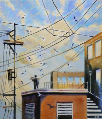 В експозицията в „Ларго“ ще бъдат представени 20 платна, специално създадени за участието на галерията в „Август в изкуството“. Деян Веков ще впечатли публиката със сюрреалистичен морски пейзаж в разпознаваемия за него стил, а с трите платна на Лора Маринова ще надникнем зад театралната завеса, където четири от древногръцките Музи танцуват и ни гледат с очакване. Контрастния характер на двете платна на Мария Чакърова представят удивително съпоставяне на различни елементи в природата: нощ и ден; студено и топло; светлина в нощта и потапяне на слънцето във водата в края на деня. Мелодия на тромпет и шум от криле ще чуем да звучат в картините на Светла Косева, а богатството на нюанси, наслагвания на материал и разнообразни форми в триптиха на Светлин Ненов ще ни разкажат за втория живот на едно платно.