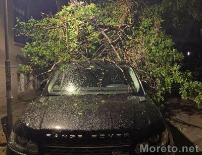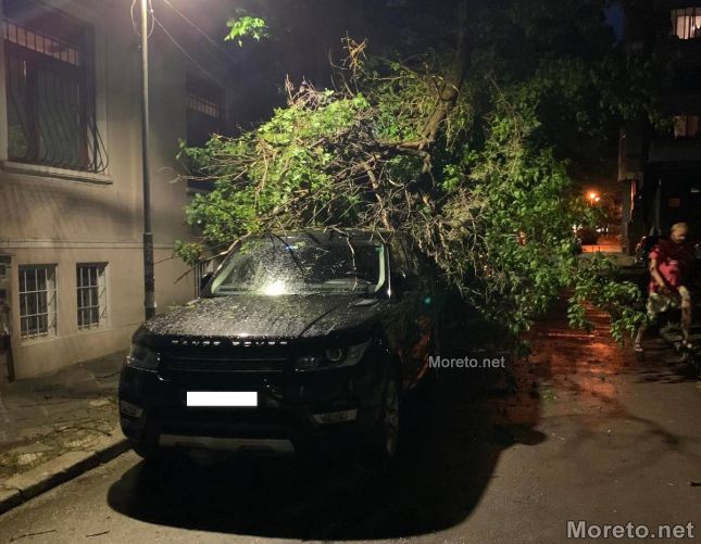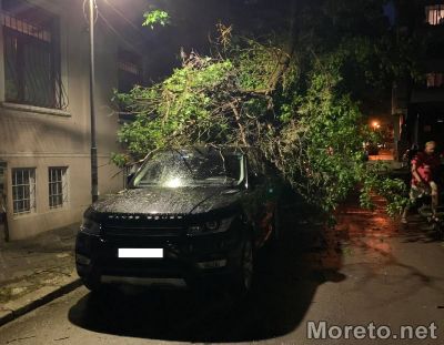 След снощния порой в морската столица голям клон се е счупил и е паднал върху автомобил, паркиран в центъра на Варна.