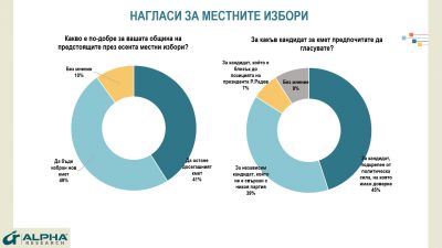 Силна поляризация по оста „приемственост или промяна в местната власт“ – 41% от имащите право на глас биха предпочели в тяхната община да продължи да управлява настоящия кмет, а 49% са за избор на нов. При очертаващата се оспорвана битка на местно равнище жителите на големите градове изразяват преобладаващо желание за нови лица в управлението, докато в по-малките общини симпатиите са на страната на настоящите кметове. Предизвикателствата пред новите лица са свързани с по-ниската им популярност, а пред действащите кметове – с евентуална протестна вълна на втори тур.