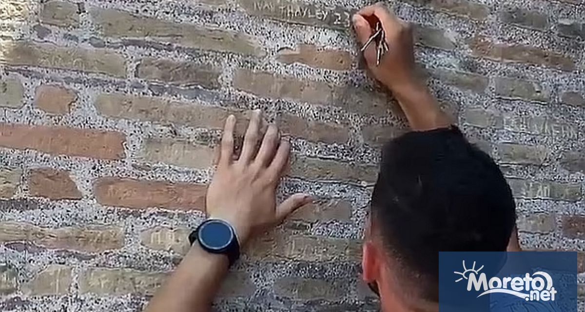 27-годишният Иван Димитров, който също се нарича Иван Хокинс, бе уловен от камерата на американския летовник Райън Луц, докато издълбава думите „Иван и Хейли 23“ в тухлената зидария с връзка ключове.