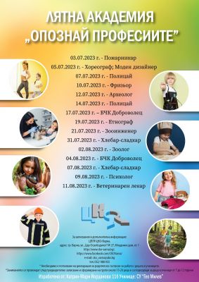 Академията „Опознай професиите” ще запознае децата със специалисти от различни професии при следния график: