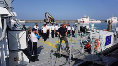Изпълнителният директор на Фронтекс Ханс Лейтенс направи в края на миналата седмица работно посещение на борда на морския патрулен кораб MAI 1107 на бреговата охрана, който е на мисия в рамките на съвместната морска операция "ТЕМИС 2023" под егидата на Фронтекс. Директорът на Фронтекс оцени особено високо работата на румънските граничари и им благодари за тяхната ангажираност, сериозност и всеотдайност при изпълнението на често трудните им мисии по патрулиране, наблюдение, търсене и спасяване в Средиземно море, се казва в прессъобщението на гранична полиция.