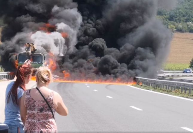Обновено към 17.35 ч.: Възстановено е движението в посока София при км 404 на АМ „Хемус“.