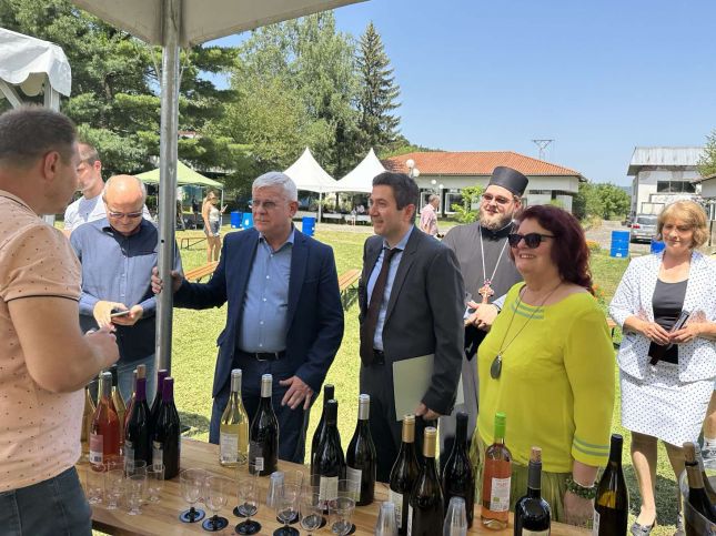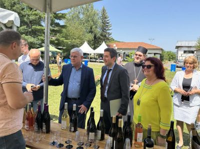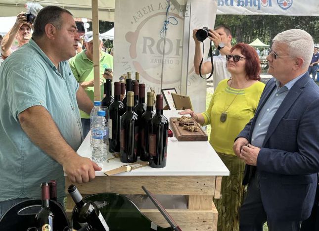Той разговаря с участниците от България и Румъния - 15 винарни, производители на местни храни, месо, сирене, хлебни и сладкарски изделия, които са представени в 25 шатри в Националното изложение на художествените занаяти и изкуства в село Орешак, и пожела успех на събитието и на всички изложители.