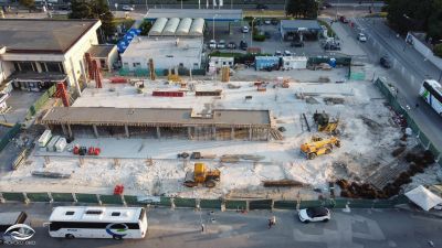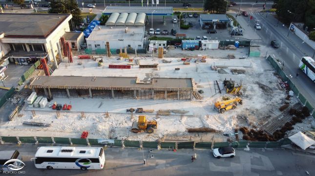 Какъв етап е стигнал строежът на новата автогара във Варна показват въздушни кадри на дрона „Морско око“, запечатани днес.