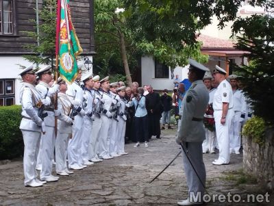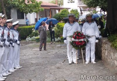 В общоградското поклонение взеха участие почетен караул и представителният духов оркестър на Военноморските сили.