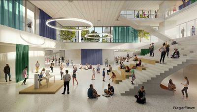 Предвижда се да има около 50 места за паркиране. При проектирането следва да се мисли и предвиди лесна поддръжка при експлоатация на сградата, която да може да се извършва без или с минимален финансов разход. Заложено е да има 34 класни стаи, столова за около 400 човека, библиотека, кътове за отдих, паркова зона, форум със сцена за около 300 човека, зала за спорт, фитнес, зала за хореография, открити пространства за спорт.