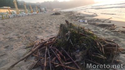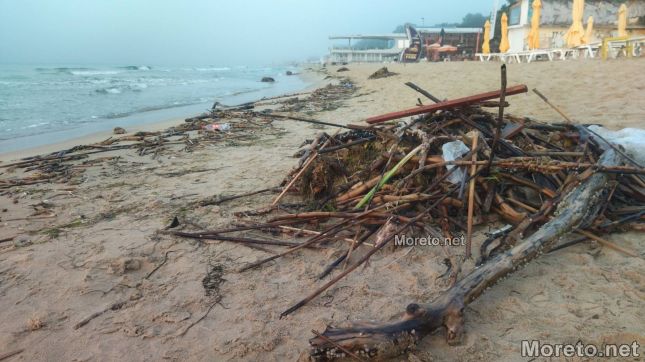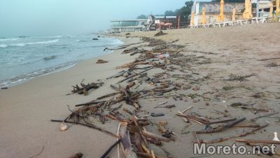 С купища изхвърлени от морето клони и съчки осъмна варненският плаж, видя репортер на Moreto.net.