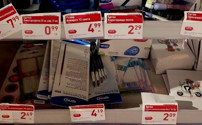 Така например, голяма търговска верига предлага за продажба тетрадки, моливи и химикалки, несесери, папки и други пособия за работа в клас с послание в червено "Сега ...“, последвано от съответната цена. Кампанията е с продължителност близо месец, но не е ясно какви ще бъдат цените на тези артикули, след като тя приключи.
